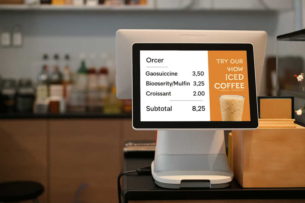Enhance Your Business Branding with Customer Displays Offer your customers a clear and informative display featuring order details, itemized costs, final total, and available payment methods. Additionally, use this opportunity to share any ongoing promotions for your business.